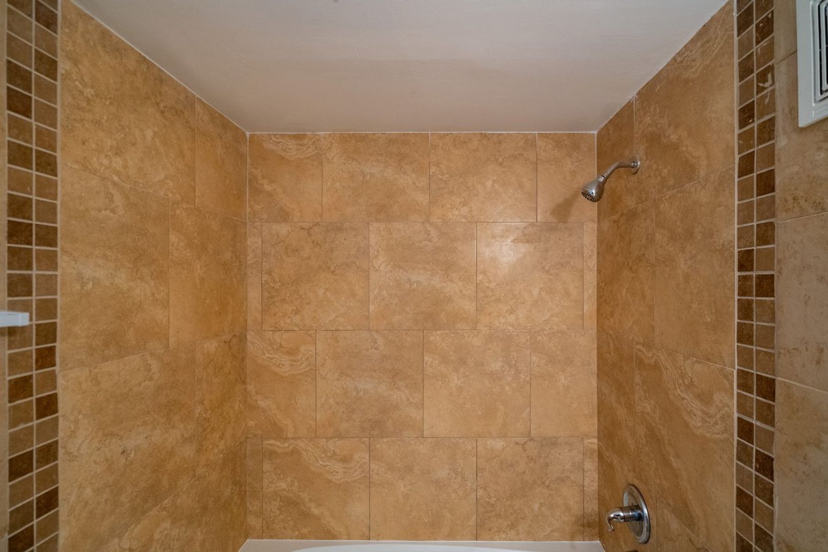 The bathroom has just been renovated with all new ceramic tiles, new tub, and toilet.